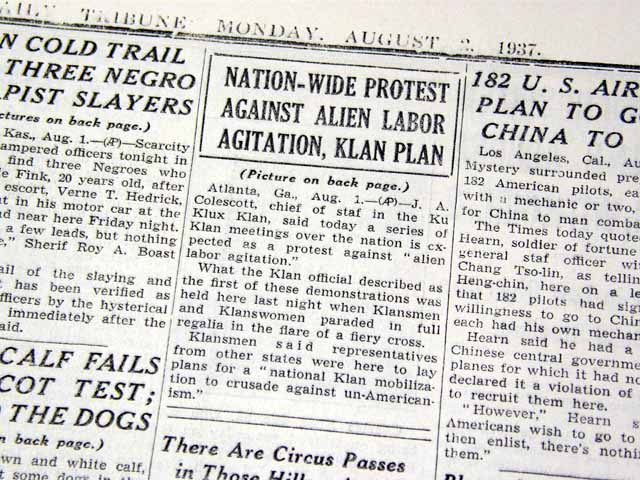 And the top of page 5 has a one column heading: "Nation-Wide Protest Against Alien Labor Agitation, Klan Plan" (see images)