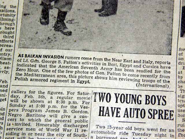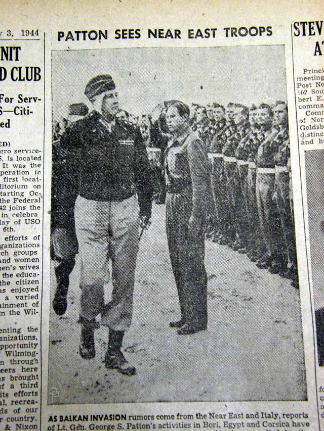 Page 2 has a two column photo showing General George S. Patton reviewing polish troops in Egypt with heading: "Patton Sees Near East Troops" and brief text. (see images)