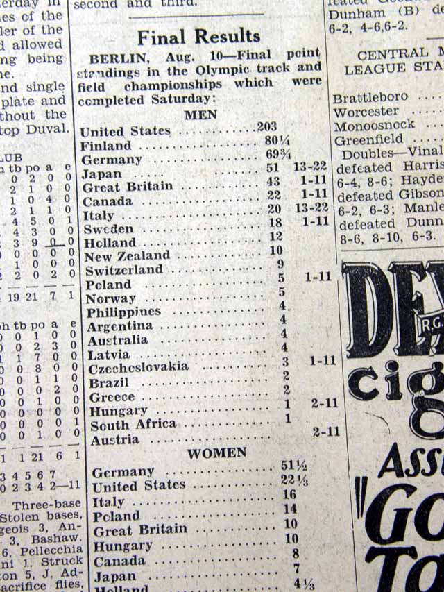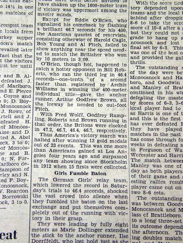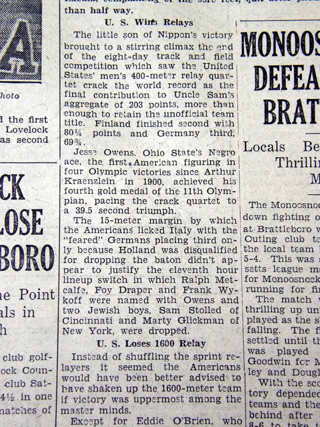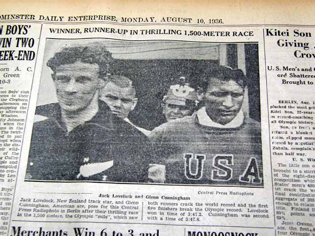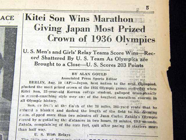 The top of page 5 has a two column heading: "Kitei Son Wins Marathon Giving Japan Most Prized Crown of 1936 Olympics" with subhead. (see images)