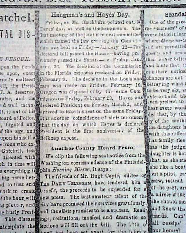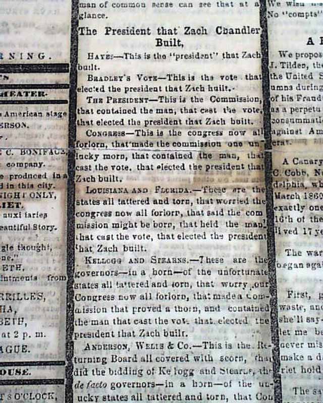 The front page has a dramatic report on the contentious 1876 election involving Hayes vs. Tilden.