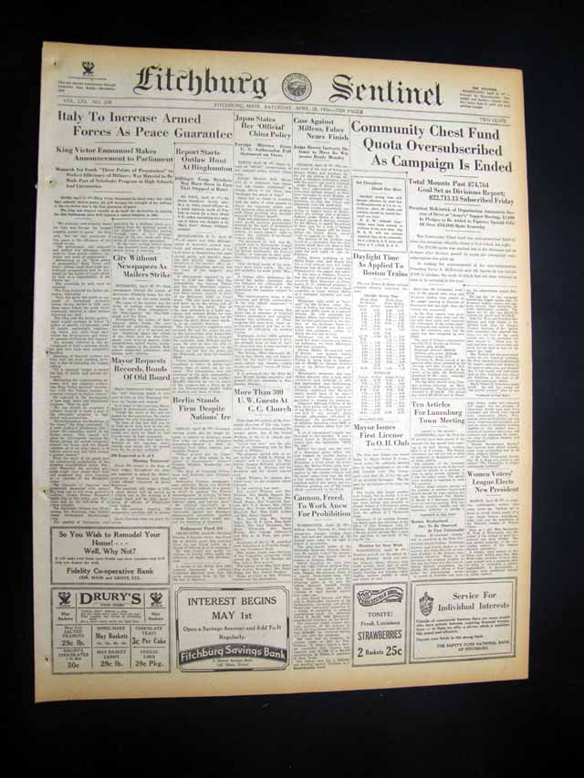 FITCHBURG SENTINEL, Massachusetts, April 28, 1934