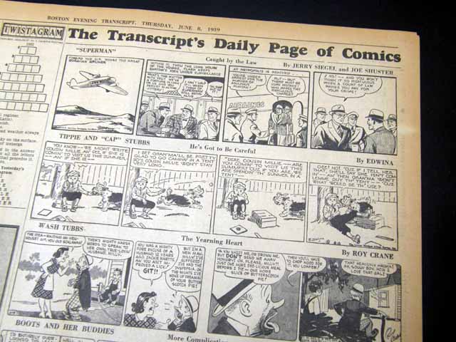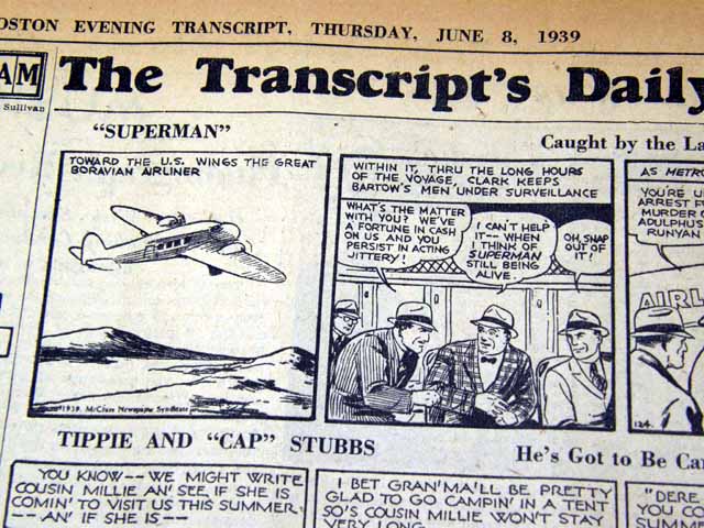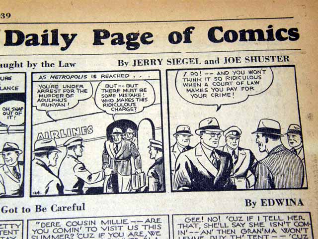 The feature is a first year printing of the "Superman" daily comic strip, which began in limited newspapers (through the McClure Newspaper Syndicate) on January 16, 1939.
