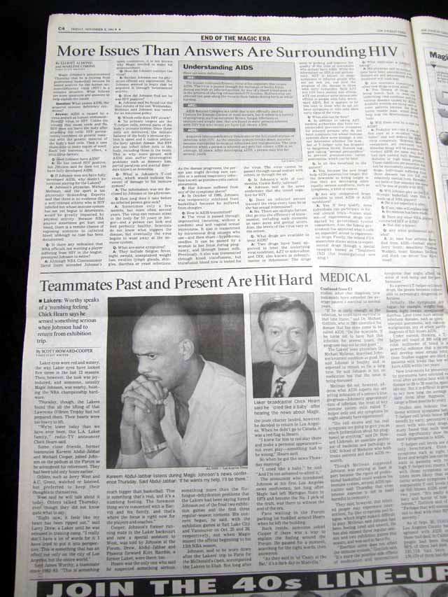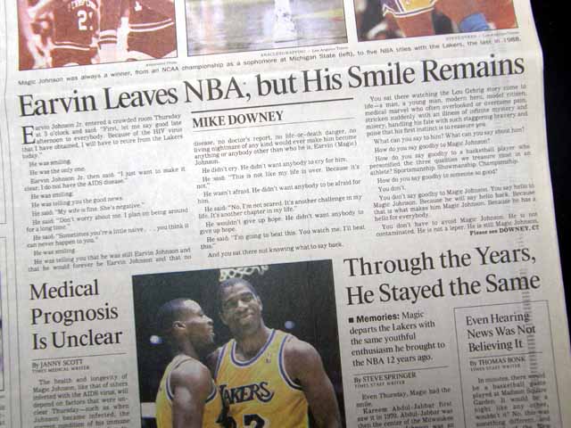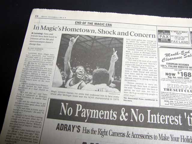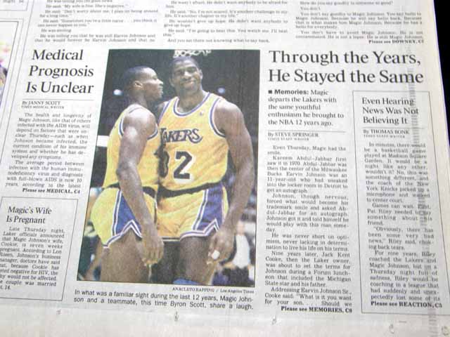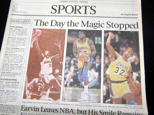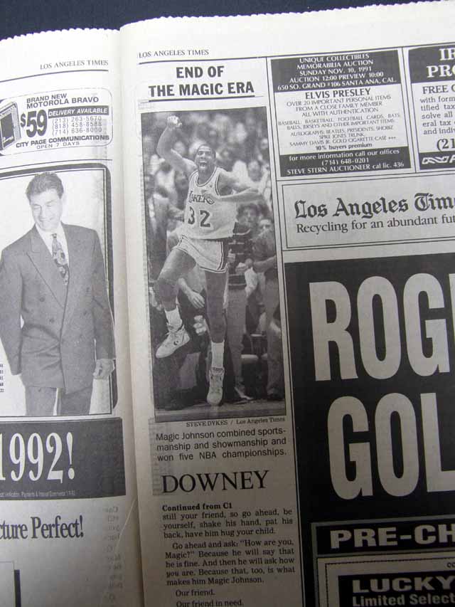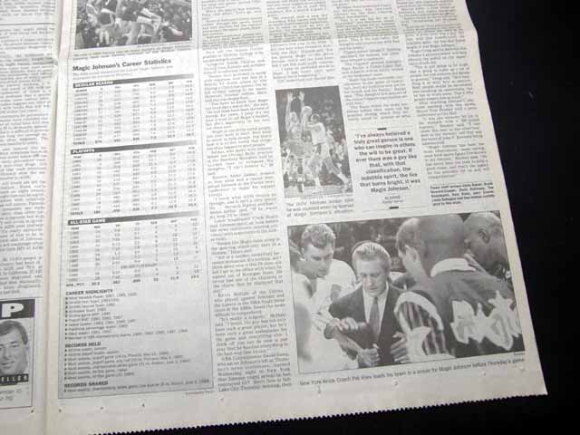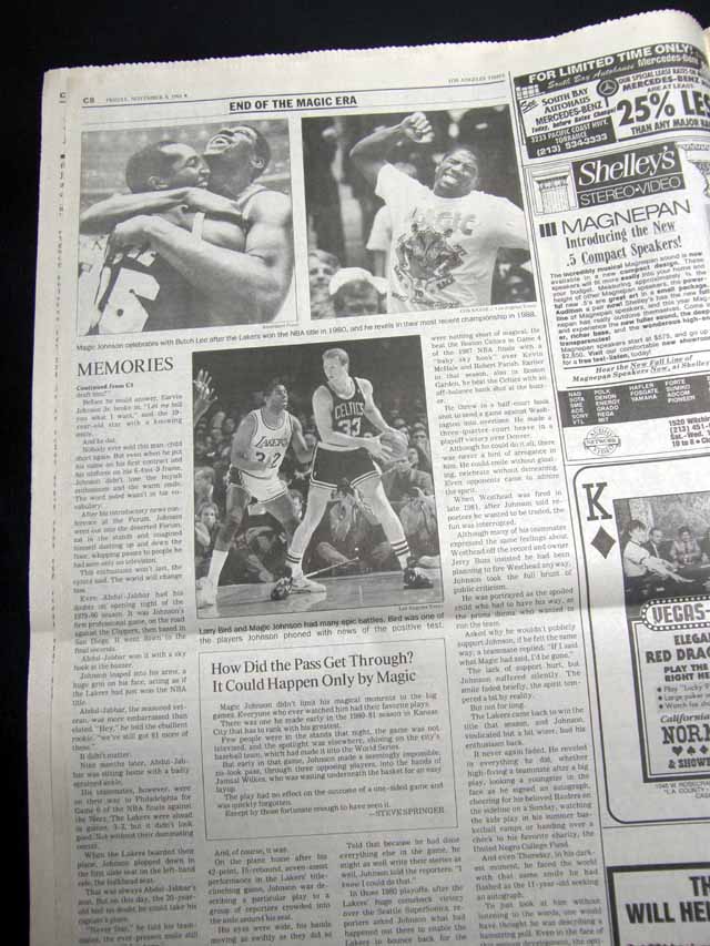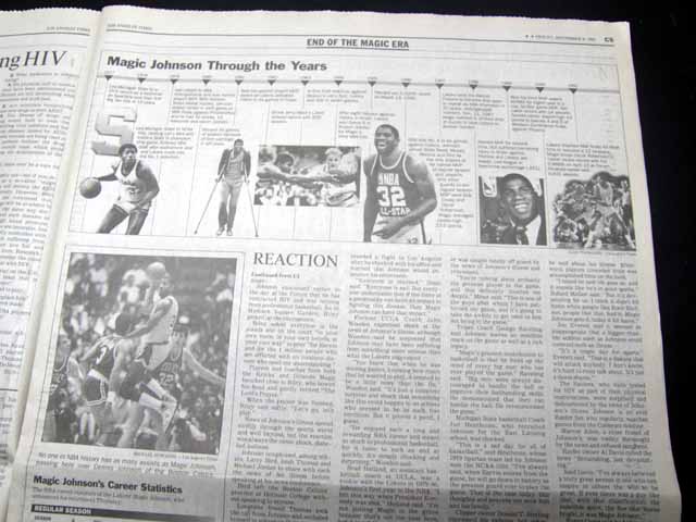 The front page of this section has a headline: "The Day the Magic Stopped" and more with a few related photos. Much more on the following pages. Great to have in this L.A. publication, the home of the Lakers.