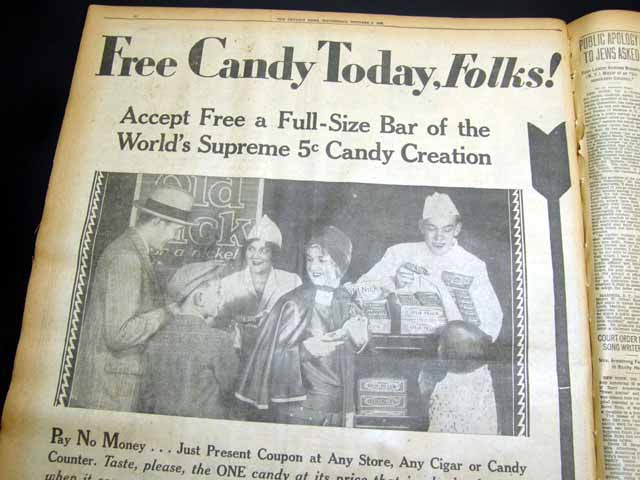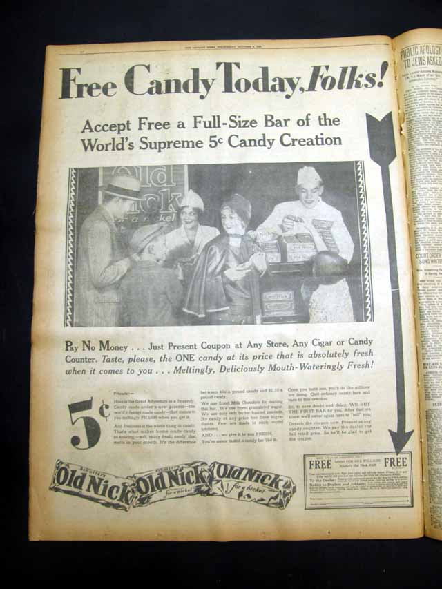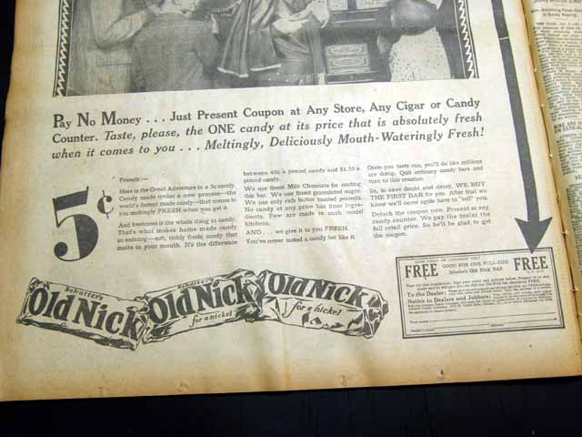 Page 44  has a nice full page advertisement for a free "Schutter's Old Nick" candy bar. (see images)