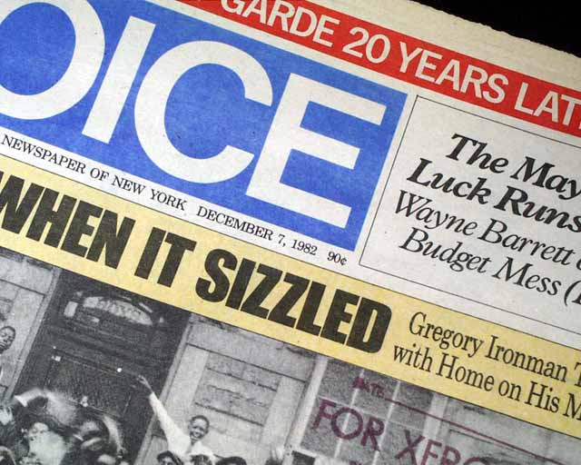 Alert: Many issues of The Village Voice contain articles and/or photos which some consider offensive, and are certainly inappropriate for children. Please purchase with discretion.