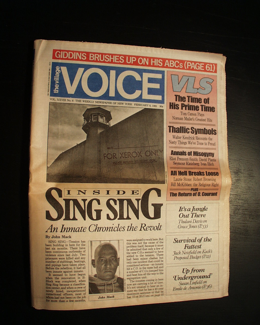 THE VILLAGE VOICE (weekly), Greenwich Village, New York City, Feb. 8, 1983
