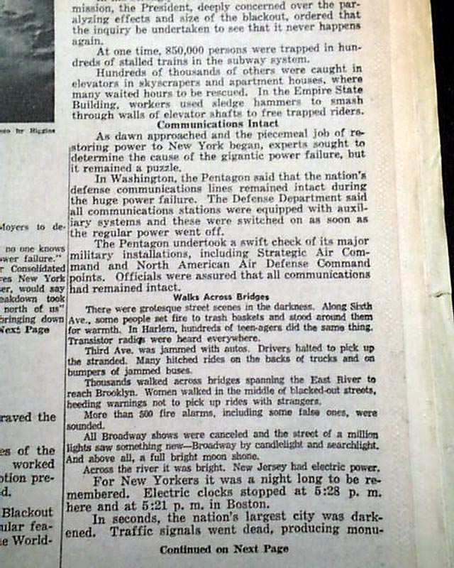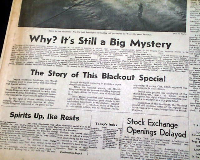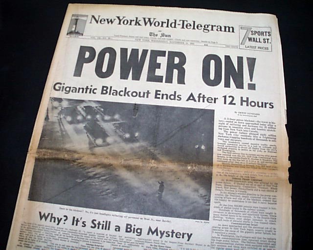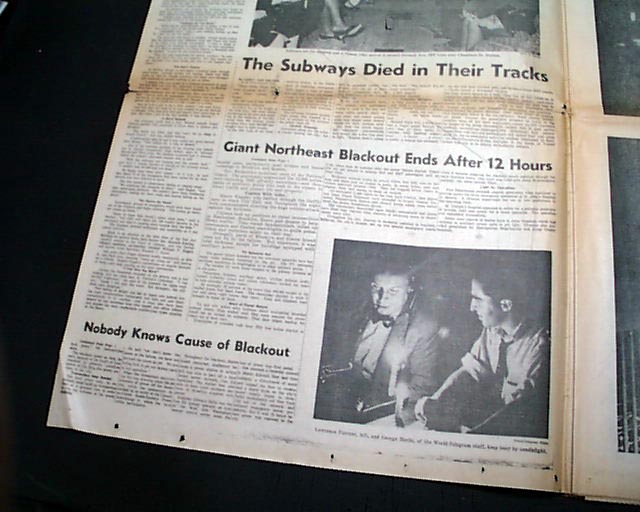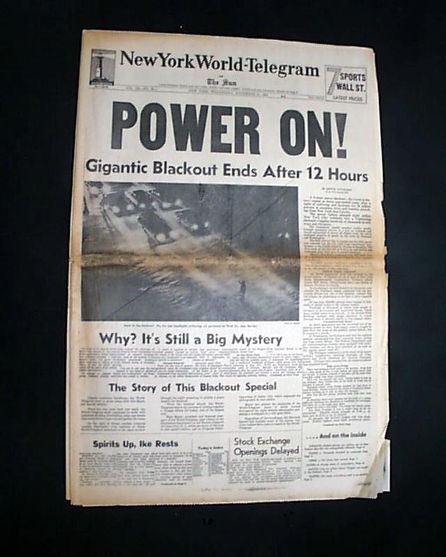 The front page has a banner headline for display: "POWER ON !; Gigantic Blackout Ends After 12 Hours" and more with related photo. (see images) Much more more on the following pages.