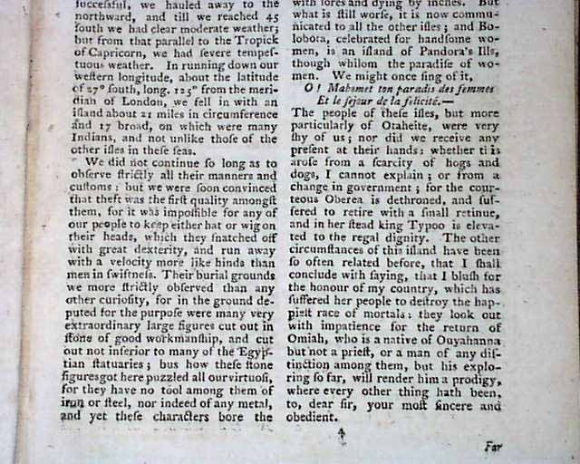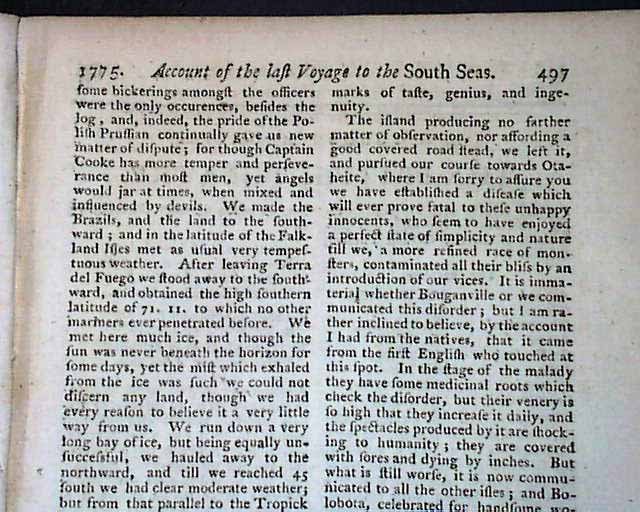 Over a page is taken up with: "A Letter from an Officer of the Resolution...Giving Some account of the Voyage to the South Sea made in the Year 1772 & Finished in August, 1775".