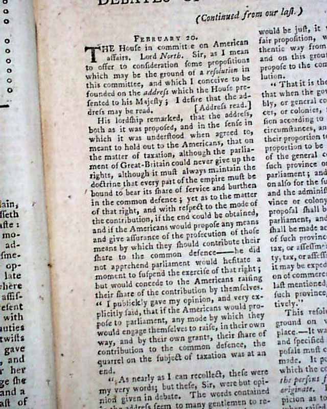Several pages are taken up with discussions in Parliament concerning the troubles in America.