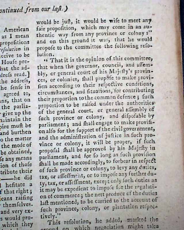 Congress rejects the Conciliatory Plan... Much on America... John Hancock is married...