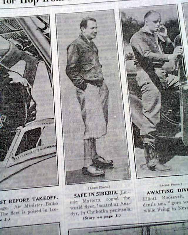 AI notes: In 1933, aviator Jimmie Mattern attempted a solo around-the-world flight in his Lockheed Vega, Century of Progress, but was forced to crash-land near Anadyr in Siberia's Chukchi region on June 14 due to engine failure. Stranded in the Arctic wilderness for over two weeks, he endured extreme cold, snowstorms, and a fractured ankle with minimal supplies. Mattern managed to send a telegram confirming his survival, stating he was “Safe at Anadyr, Chukotka, Siberia.” Local Chukchi Inuit discovered him and transported him to Anadyr, where Soviet pilot Sigizmund Levanevsky flew him to Nome, Alaska, from which he returned safely to the United States. Despite the harrowing ordeal, Mattern’s determination and survival earned him international acclaim and added a remarkable chapter to early aviation history.