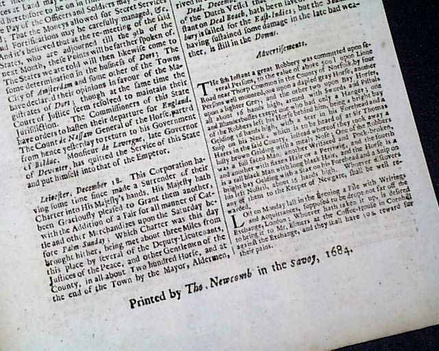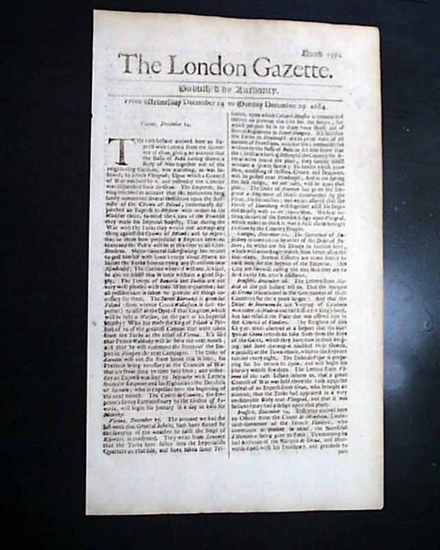THE LONDON GAZETTE, England, Dec. 29, 1684