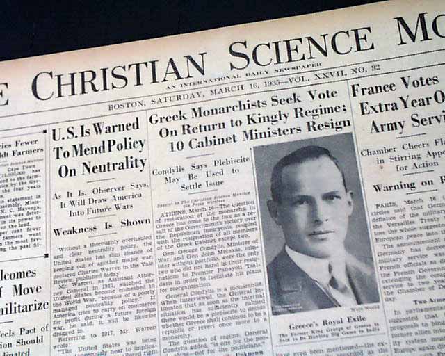 THE CHRISTIAN SCIENCE MONITOR, Boston, March 16, 1935
