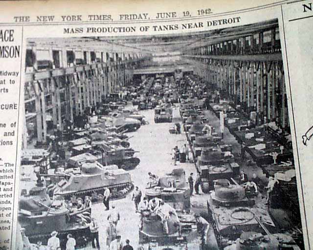 1942 WWII armored tanks prodcution photo...