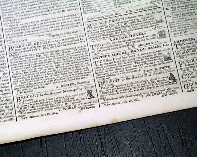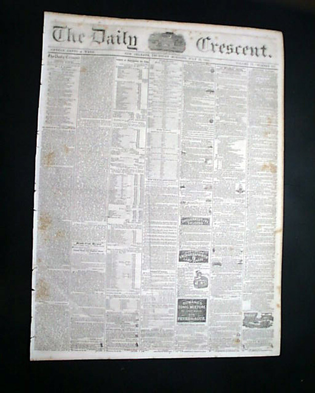 THE DAILY CRESCENT, New Orleans, Louisiana, July 31, 1851 Newspapers from the Deep South are particularly difficult to find from before the Civil War, but here is a fine example of one.
