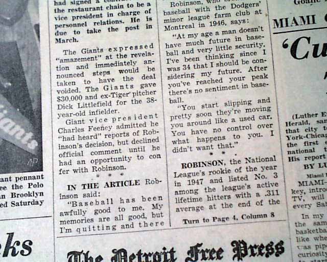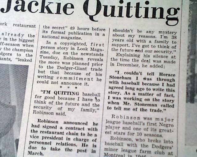 * Jackie Robinson announcement - Brooklyn Dodgers