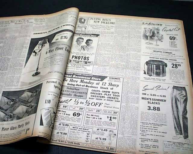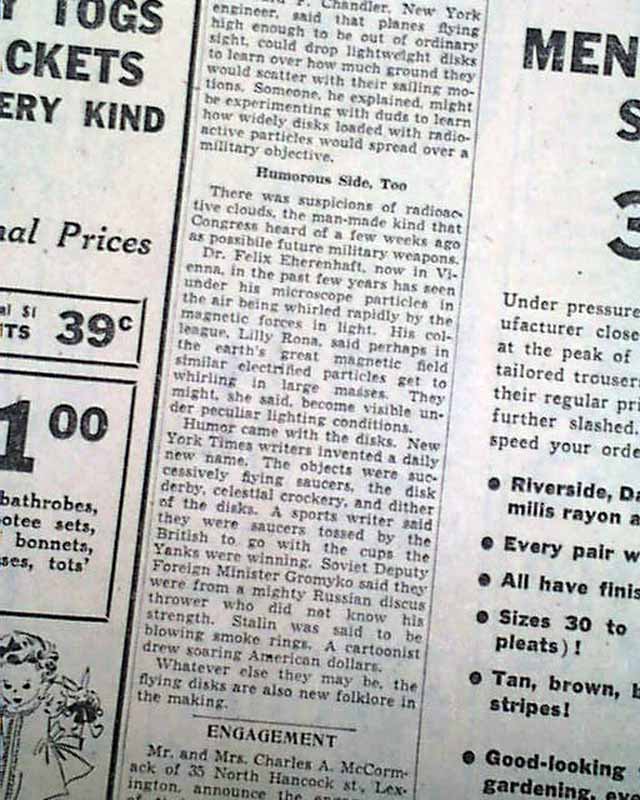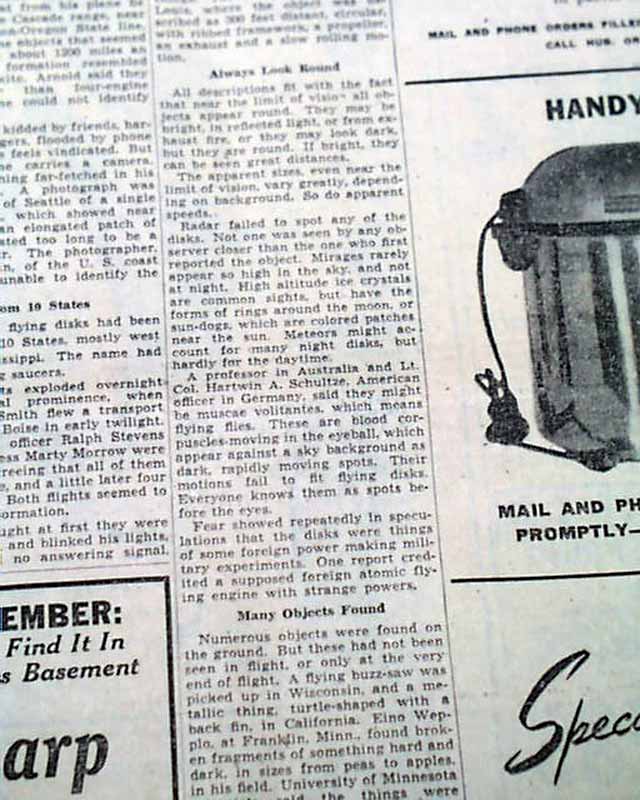 The top of page 5 has has two column heading: "'FLYING DISCS NEW FOLKLORE" with subhead. (see images) A somewhat lengthy editorial.