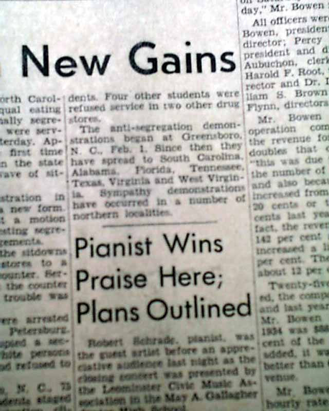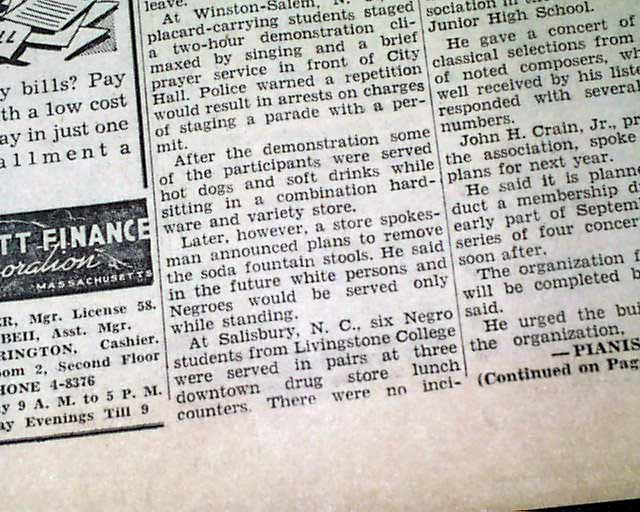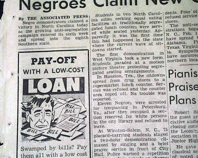 The front page has a three column heading: "Negroes Claim New Claims" with lead-in: "Anti-Segregation Fight" (see images)