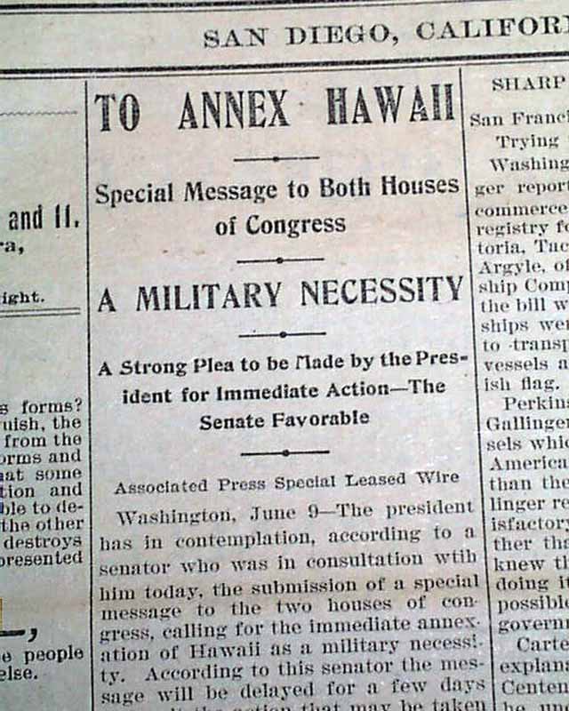 A one column heading reads: "TO ANNEX HAWAII" with subheads. Surprisingly this issue is in good condition being from the "wood pulp" era. Very hard to find issues that are not totally fragile from this era in paper.