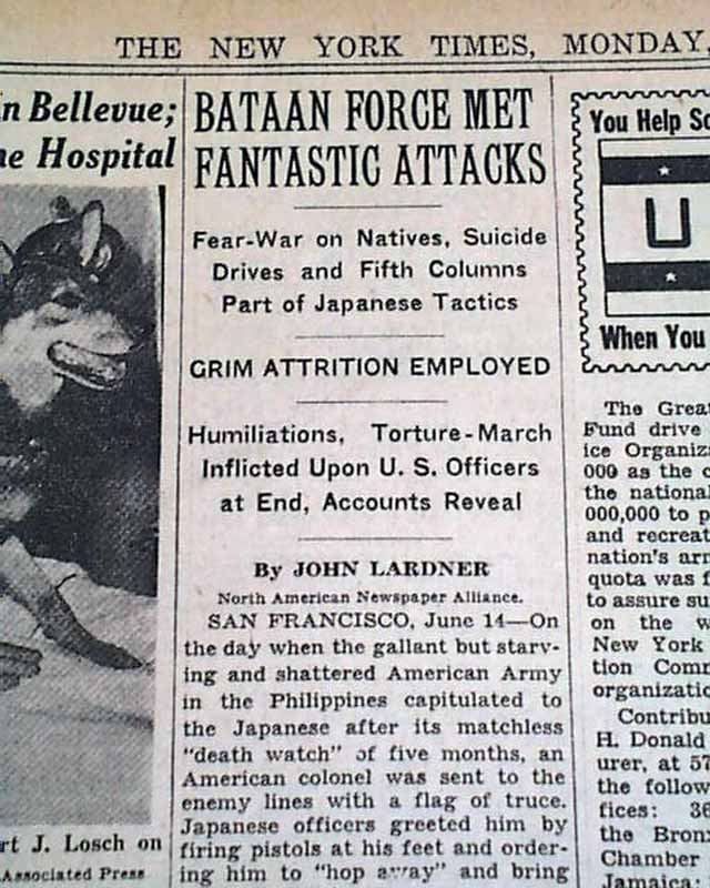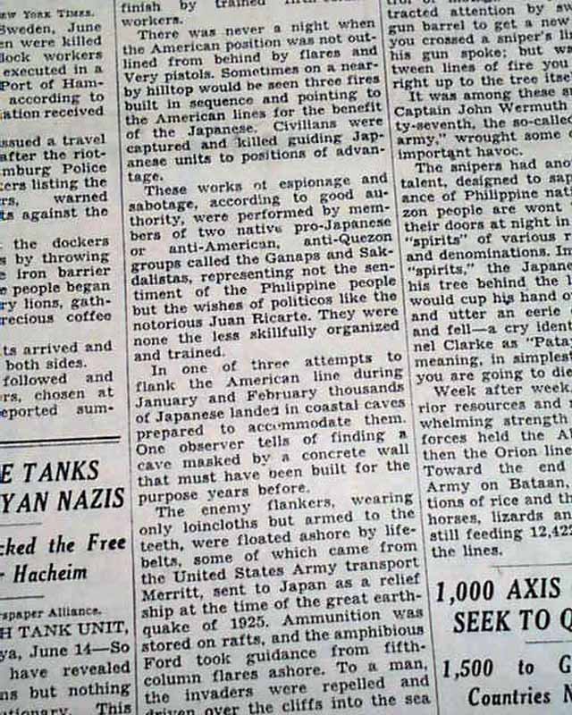 The top of page 13 has a one column heading: "BATAAN FORCE MET FANTASTIC ATTACKS" with subheads. (see images)