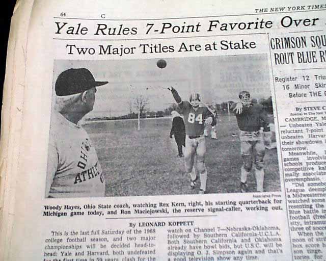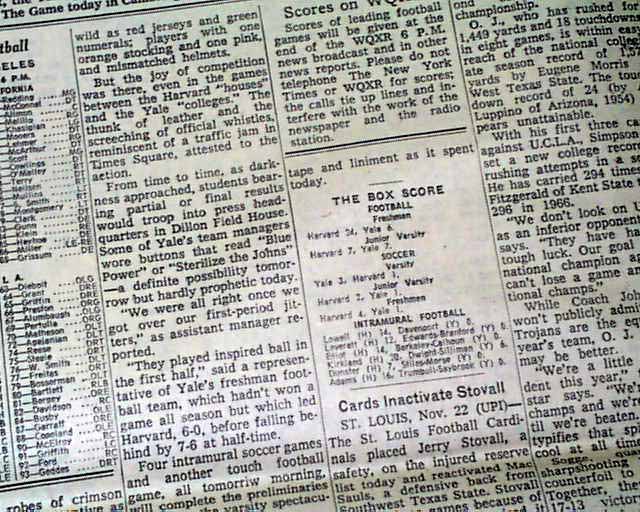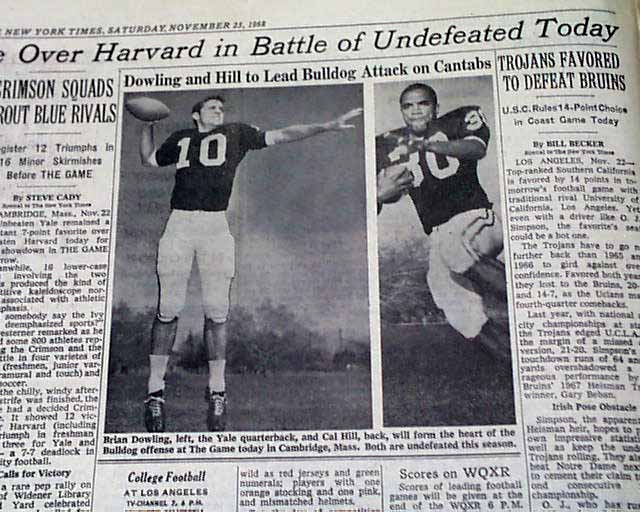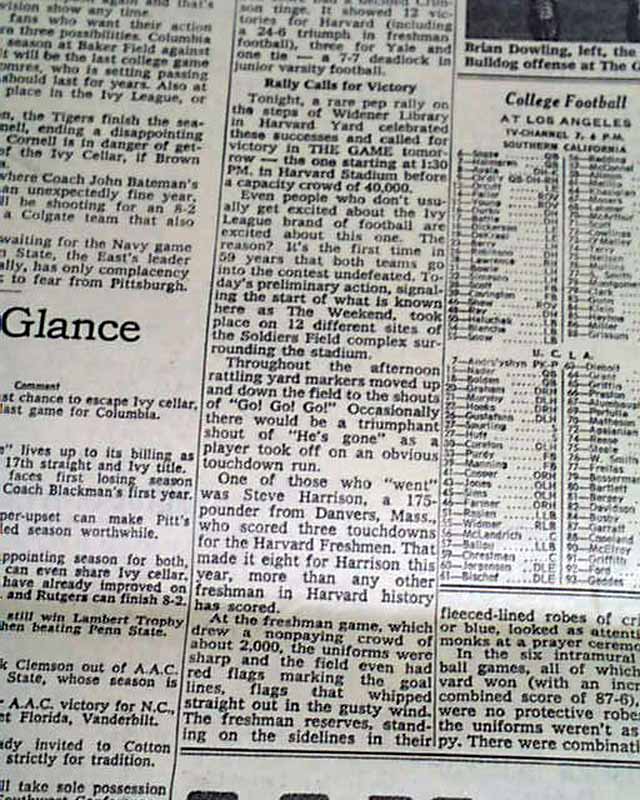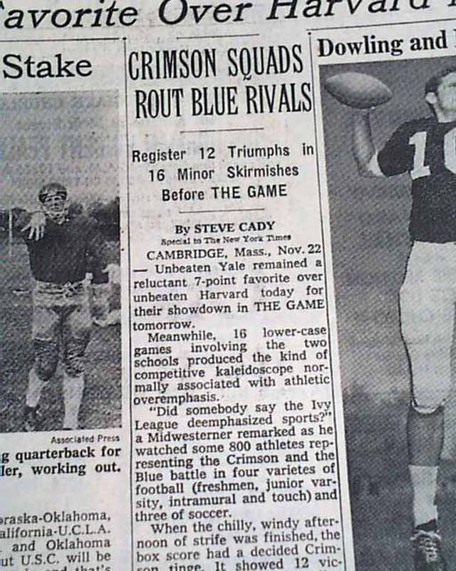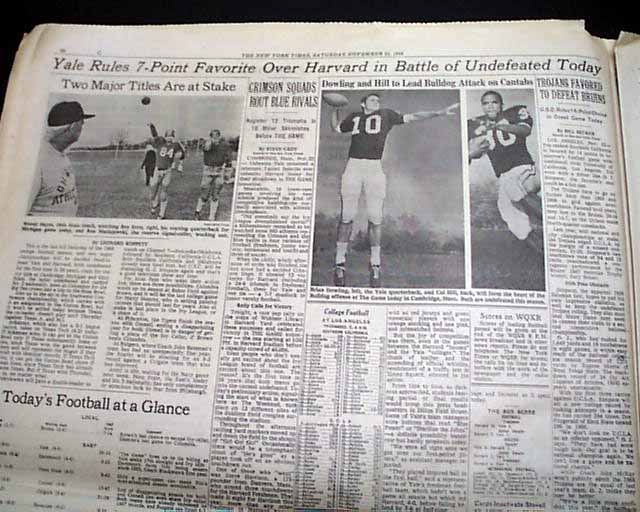 The top of page 64 has a banner heading: "Yale Rules 7-Point Favorite Over Harvard in Battle of Undefeated Today" with related photo.