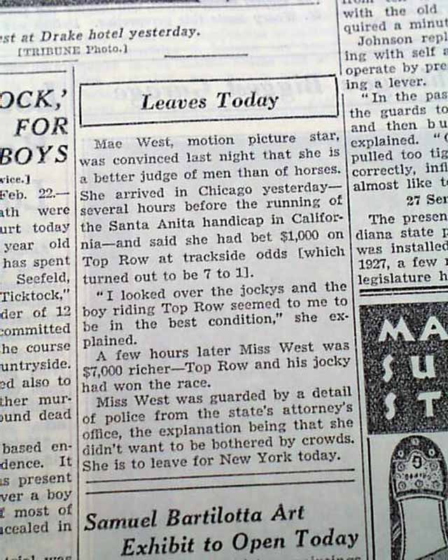 Actress Mae West & the 1936 Santa Anita Handicap...