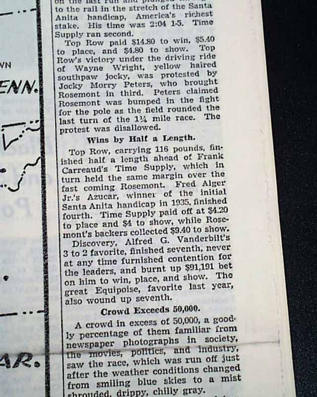 * 1936 Santa Anita Handicap (Top Row)