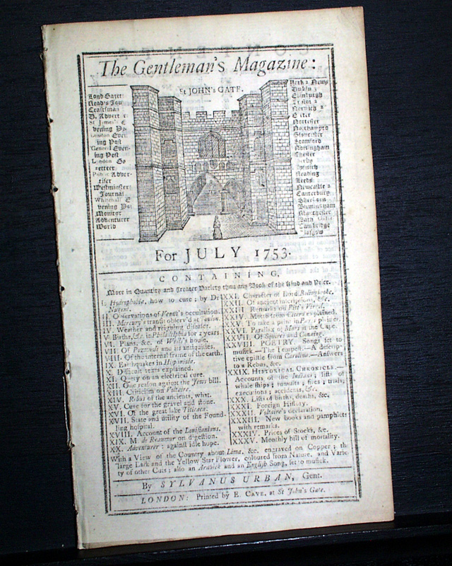 THE GENTLEMAN'S MAGAZINE, London, July, 1753  Near the back is a terrific--yet inconspicuous--report which is part of various news items under the heading: "America" and dateline of Philadelphia, June 7.