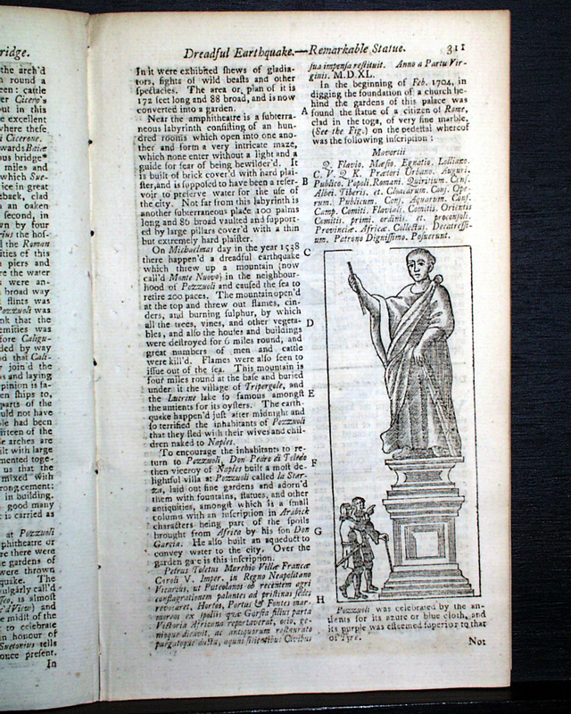 There are several prints within the issue as shown in the photos, one of which is a view and article headed: "An Account of the City of Pozzuoli, & of the Antiquities in its neighborhood". Pozzuoli is a suburb of Naples.