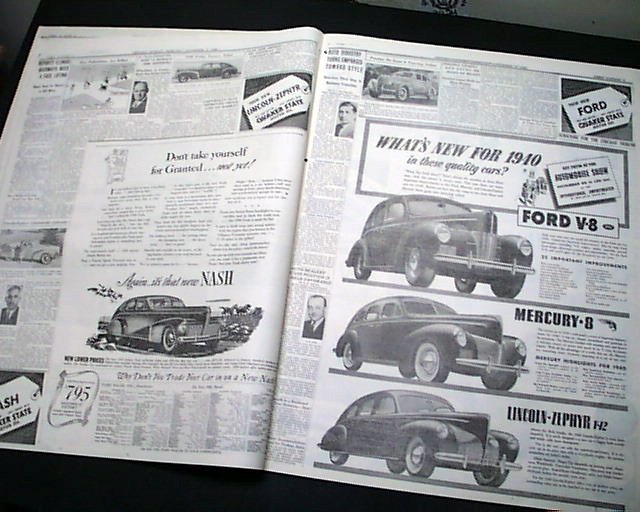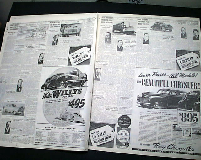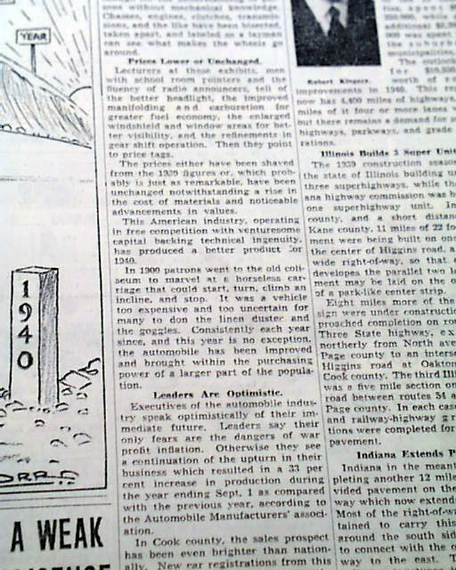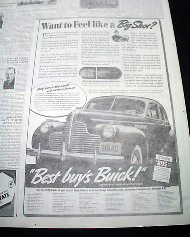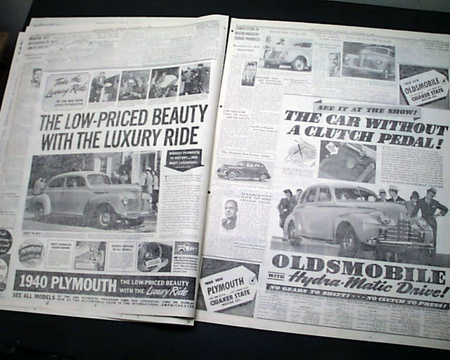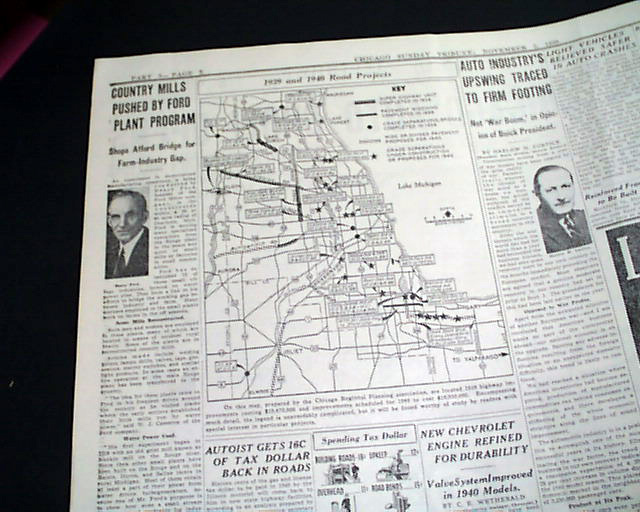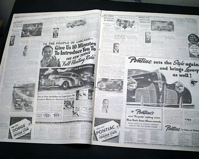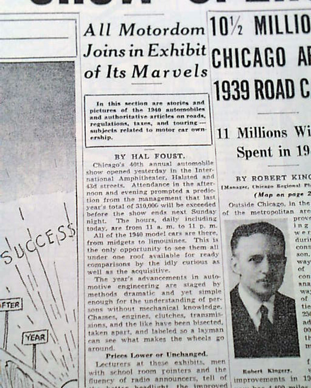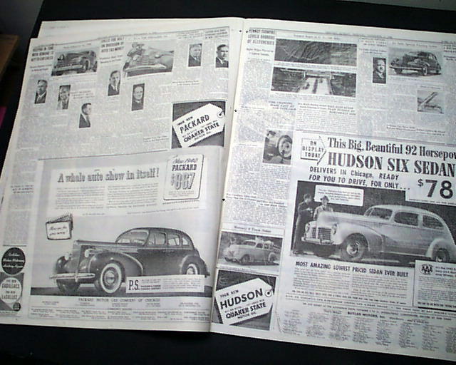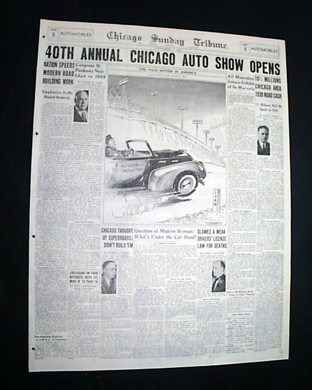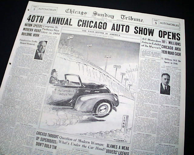 SECTION 5 (Automobiles) only of the Chicago Sunday Tribune, Nov. 5, 1939 The front page has a banner headline: "40TH ANNUAL CHICAGO AUTO SHOW OPENS" with the entire section devoted to the Automotive industry with new innovations and many photos. Great reading. This particular auto show featured the very first car with air conditioning.