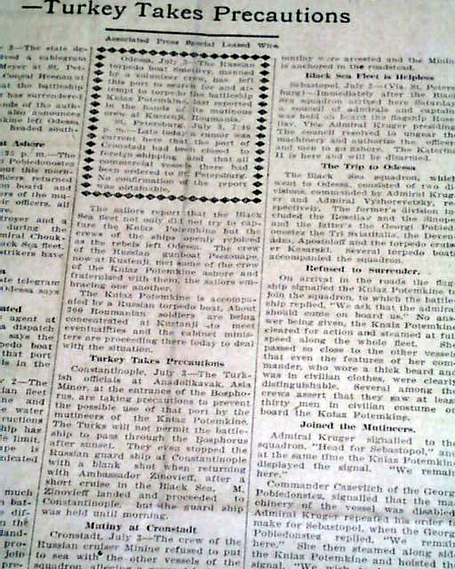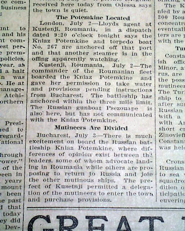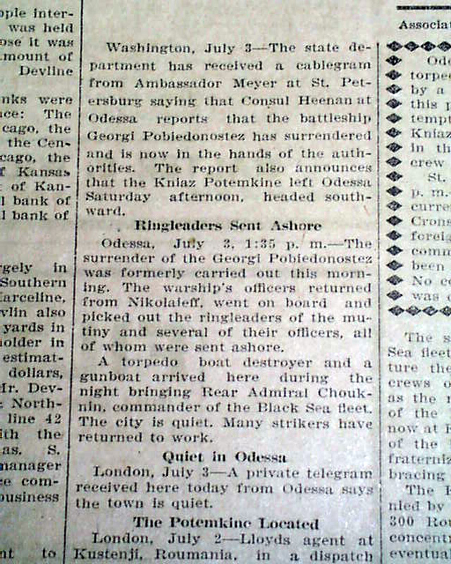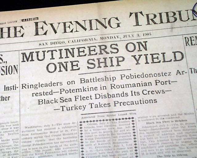AI notes: The Potemkin mutiny took place on June 27, 1905, when sailors on the Russian battleship rebelled against their officers over poor conditions and spoiled food. Led by Afanasy Matyushenko, the crew killed some officers and took control of the ship, later sailing to Odessa to support striking workers. The mutiny became a key symbol of the 1905 Russian Revolution before the crew eventually fled to Romania.