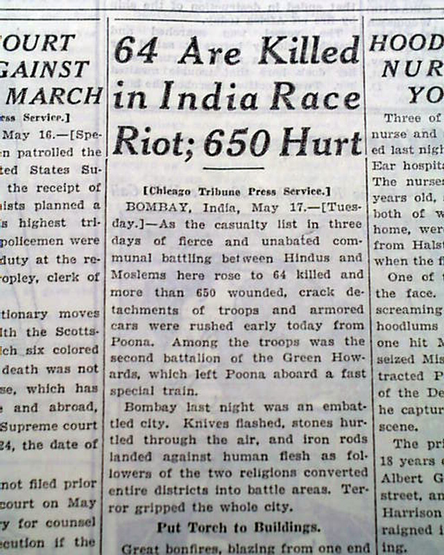 The front page has a one column heading: "64 Are Killed in India race Riot; 650 Hurt" (see images)