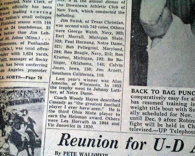 Howard Cassady wins Heisman Trophy... Ohio State...