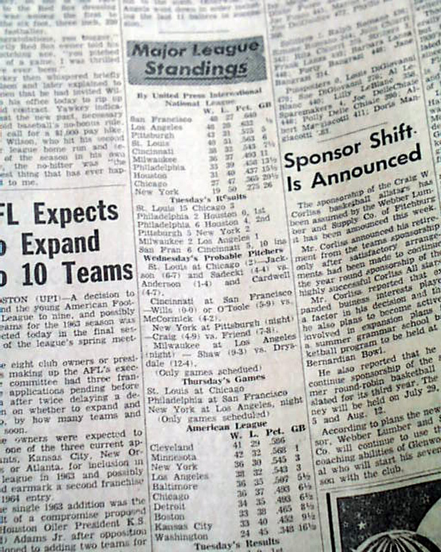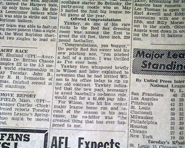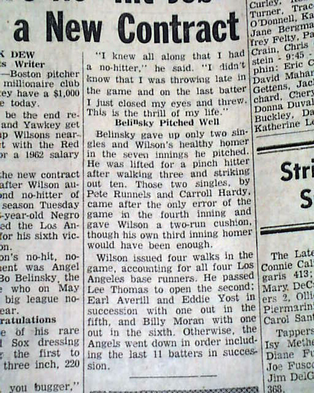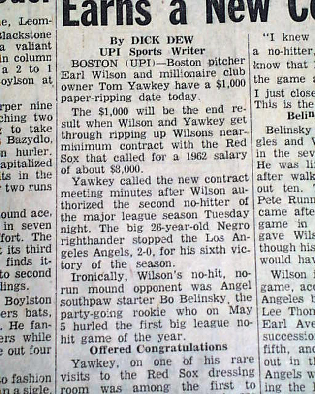 Page 6 has a two column heading: "Wilson's No - Hit Job Earns a New Contract" with lead-in: "Yawkey Delighted" (see images)