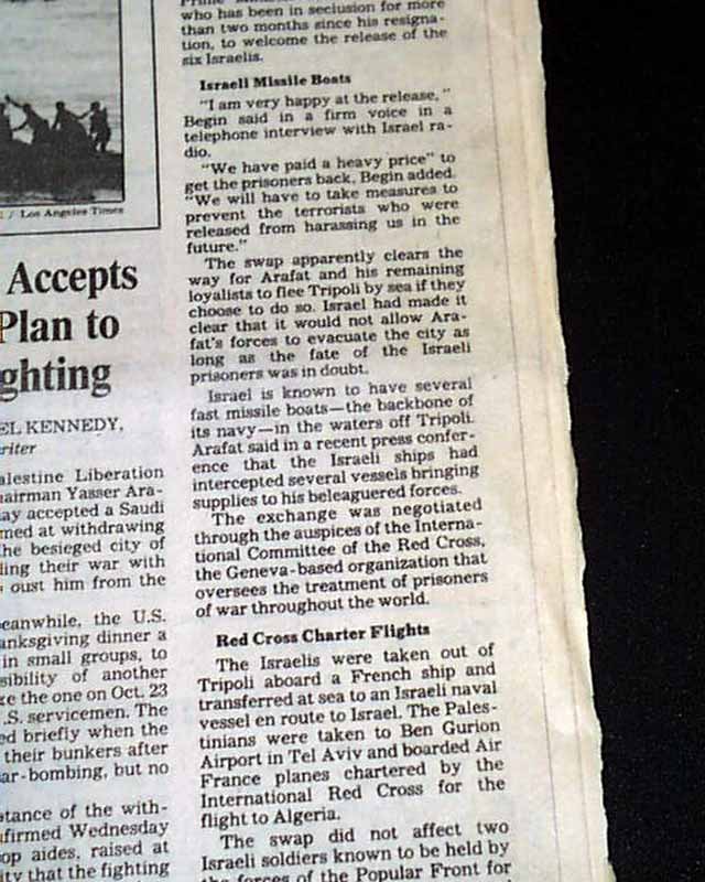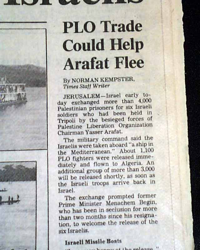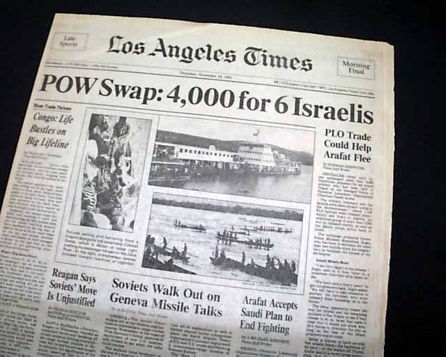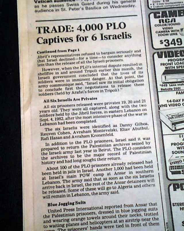The top of the front has a nice banner headline for display: "POW Swap: 4,000 for 6 Israelis" with subhead. (see images)