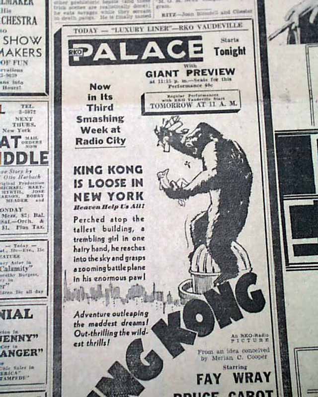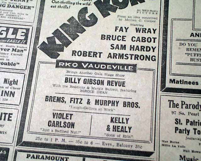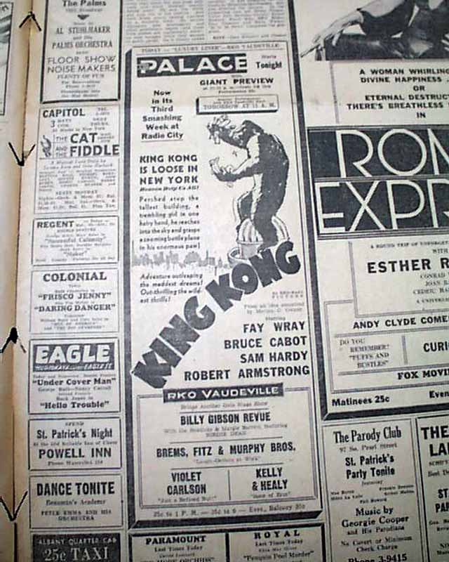 Page 9 has 8 x 4 inch advertisement for the opening day showing of "KING KONG" in Albany, New York.