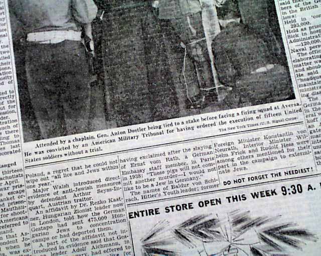 A related item at the top of page 10 shows General Anton Dostler being tied up to a stake for execution by firing squad. (see images)