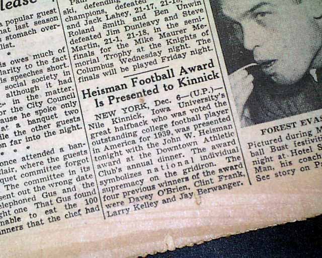* Nile Kinnick wins Heisman Trophy (1st report)