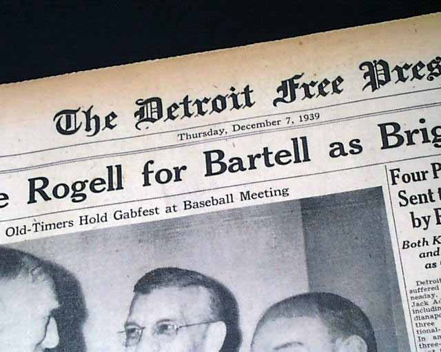 SPORT'S SECTION only of The Detroit Free Press, December 7, 1939