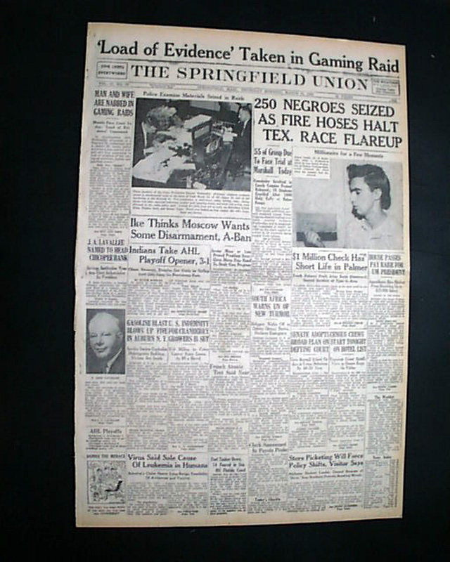 The front page has a four column headline: "250 NEGROES SEIZED AS FIRE HOSES HALT TEX. RACE FLAREUP" with subheads. (see images)