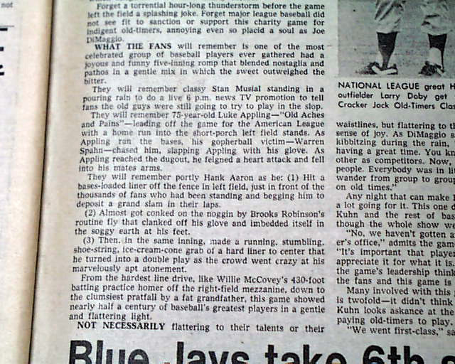 AI notes: In the 1982 MLB Old-Timers Game at Washington’s RFK Stadium, 75-year-old Hall of Fame shortstop Luke Appling delivered one of the most memorable moments in the event’s history by hitting a stunning home run off 50-year-old Warren Spahn. Despite his advanced age and reputation as a contact hitter rather than a power threat during his playing career, Appling turned on a pitch and lofted it over the left-field fence—helped slightly by the shortened dimensions used for the exhibition—bringing the crowd to its feet. The homer became an enduring baseball anecdote, symbolizing the charm of the Old-Timers Game and Appling’s remarkable athletic longevity, and is still frequently recalled as one of the most delightful surprises in baseball’s nostalgic events.