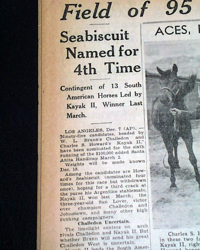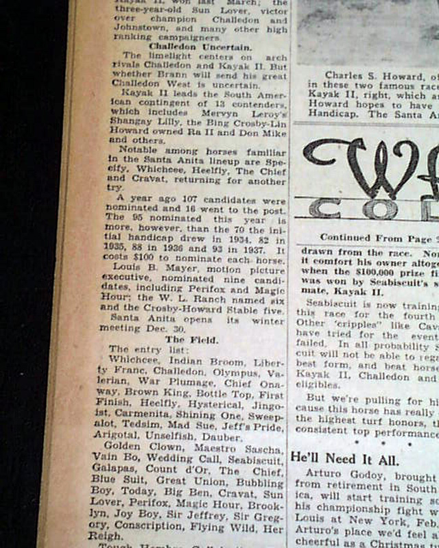 Seabiscuit to race in the 1940 Santa Anita Handicap...