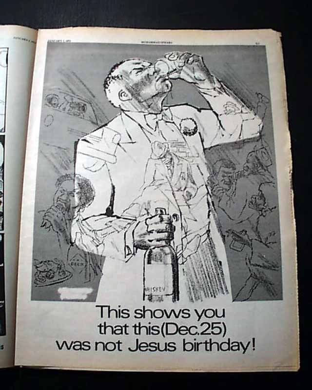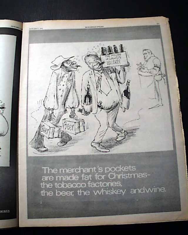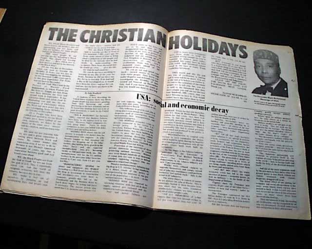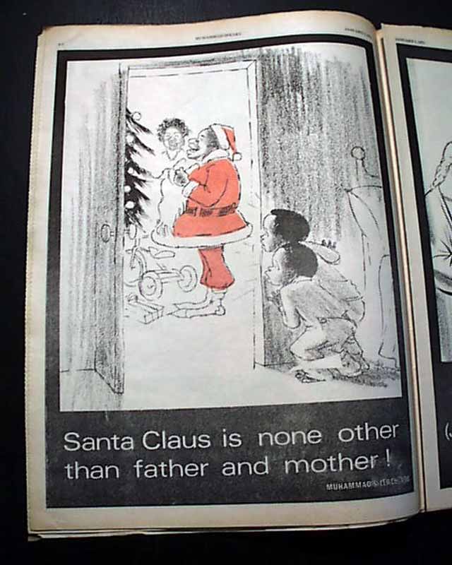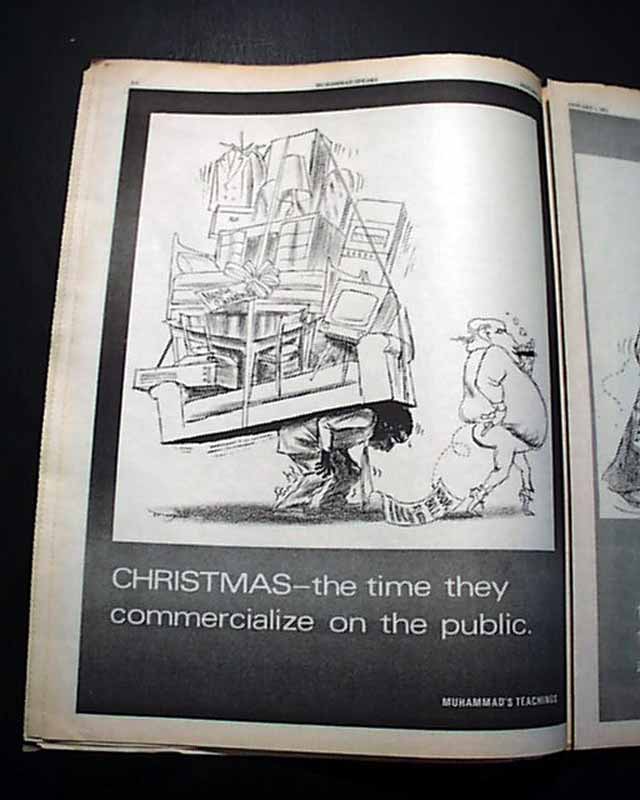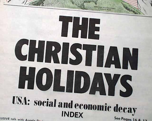 The bold banner headline reads: "THE CHRISTIAN HOLIDAYS" and in smaller heads: "USA: Social and Economic Decay". Other articles inside include: ""Exclusive Talk with Angela Davis" "Is Pollution Fight a 'White Thing'?" "What Islam Has done" and more.