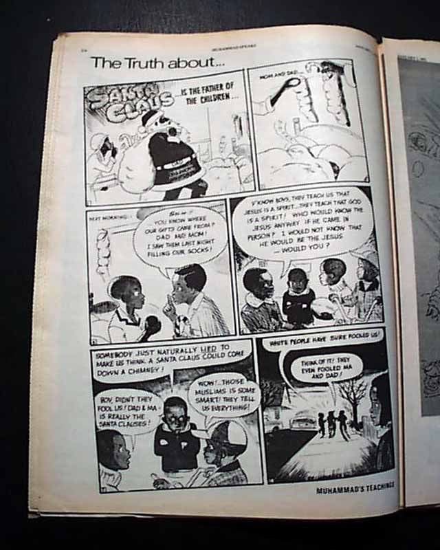 AI notes: Muhammad Speaks was a Chicago-based newspaper established in 1960 as the official publication of the Nation of Islam (NOI), initially under the name Mr. Muhammad Speaks before relaunching nationally as Muhammad Speaks in 1961. It served as both a religious and political voice, combining coverage of domestic and international news with commentary on civil rights, Black empowerment, police brutality, housing, education, and community affairs, all framed through the perspective of the NOI’s teachings. Known for its bold layout, striking illustrations, and political cartoons, the paper became one of the most widely read Black-owned newspapers in the United States, with circulation reportedly reaching hundreds of thousands weekly. Sold on street corners, in Black neighborhoods, and in NOI temples, it functioned as a key tool for outreach, community organizing, and shaping public opinion within African-American communities. The newspaper ceased publication under the name Muhammad Speaks in 1975 following organizational changes after Elijah Muhammad’s death, later evolving into other publications, while its legacy influenced subsequent NOI-affiliated newspapers such as The Final Call.