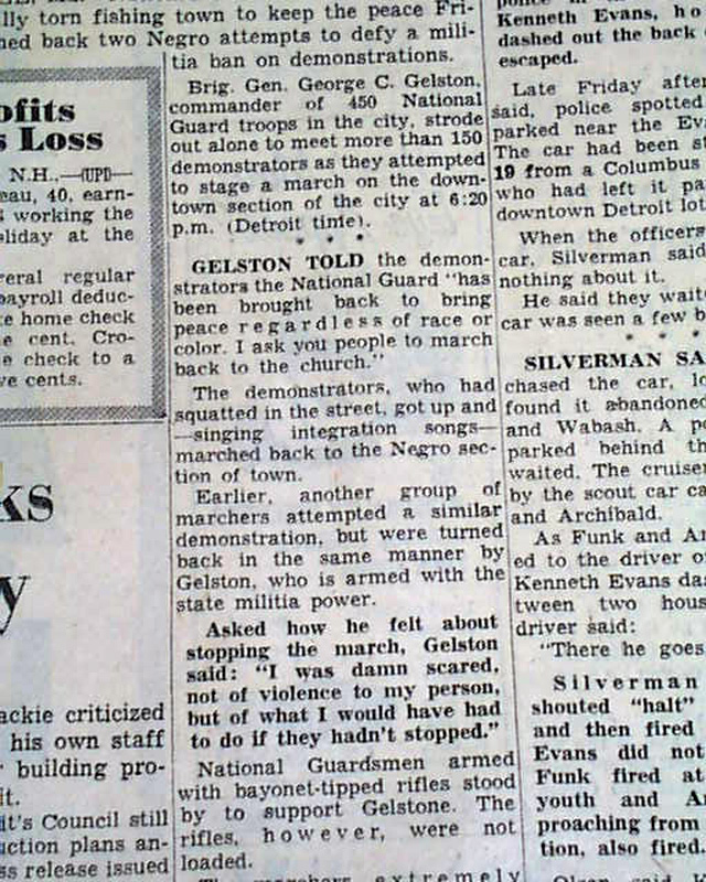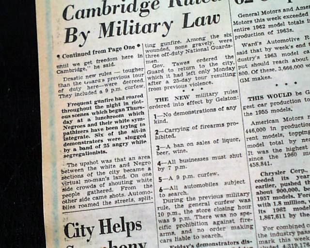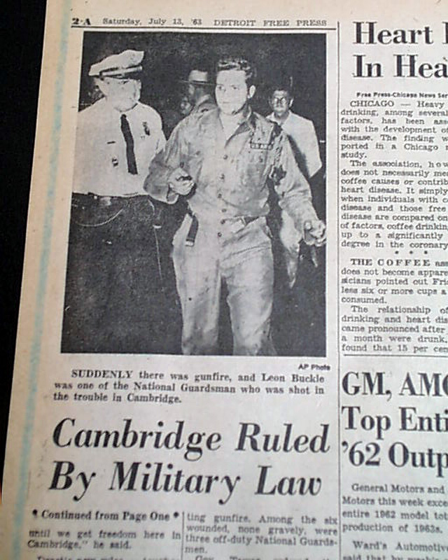 The front page has a two column heading: "Maryland Troops Rule Cambridge, Repulse Marchers" Related photo on page 2. (see images)