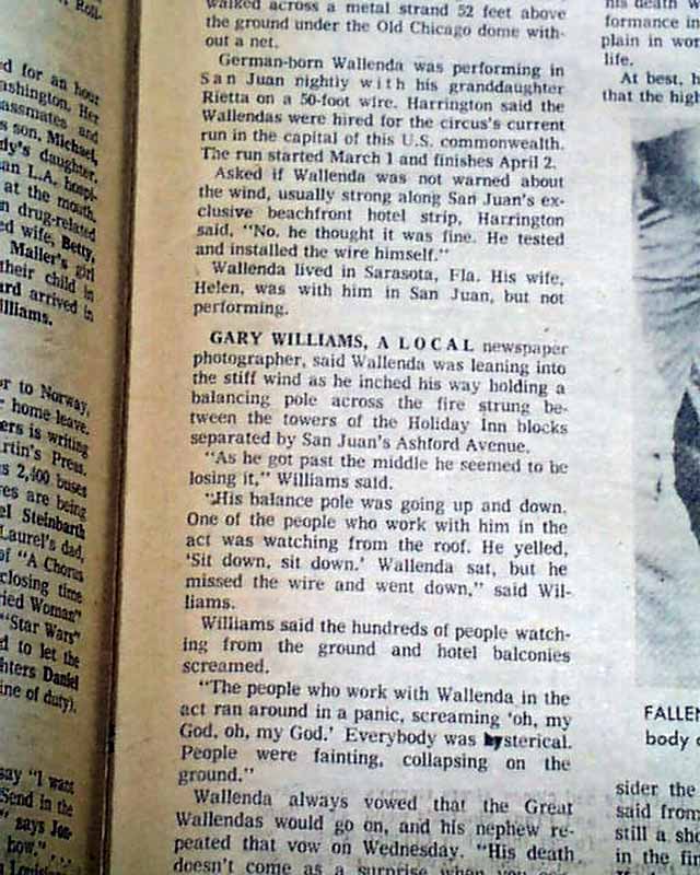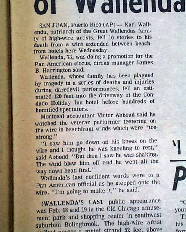 And page 7 has a heading that reads: "10-story fall on high wire kills Patriarch of Wallendas" and more with two related photos. (see images)