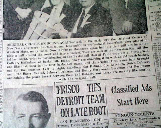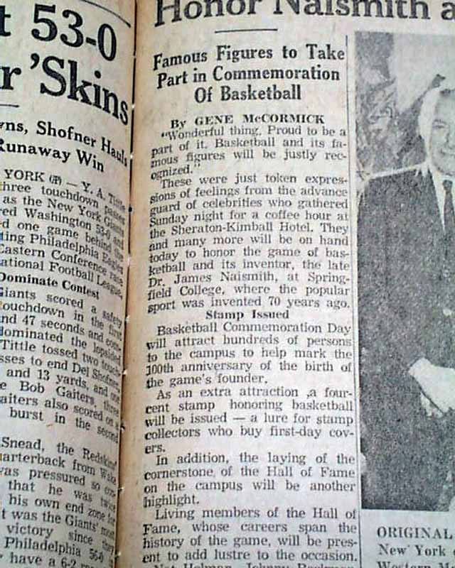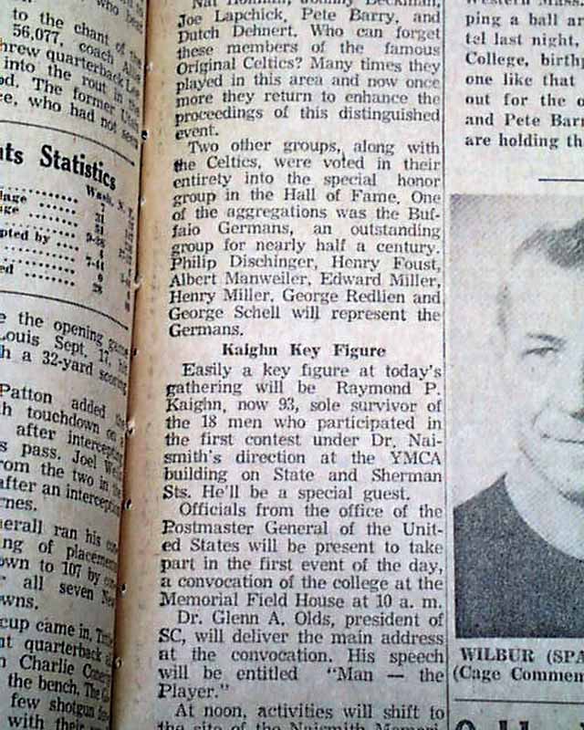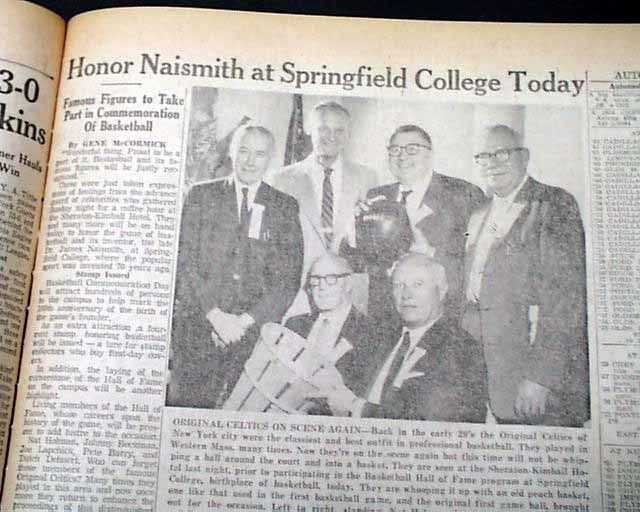 The top of page 23 has a four column heading: "Honor Naismith at Springfield College Today" with subhead and two related photo. (see images) See below for details of this event. Might only be reported as such in a Springfield newspaper, extremely rare as such.