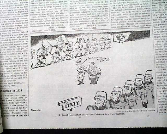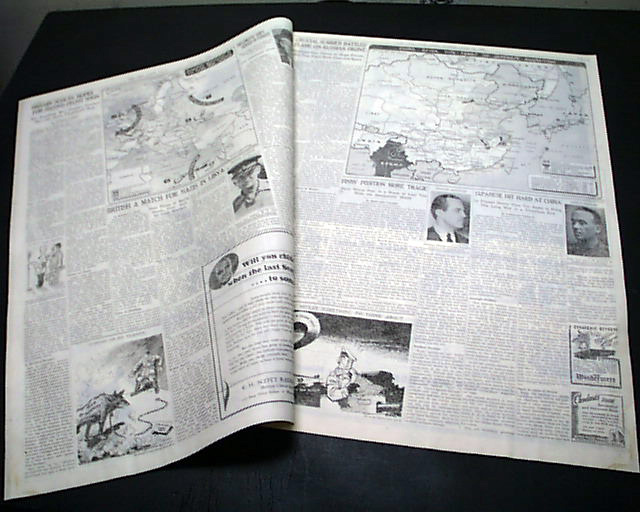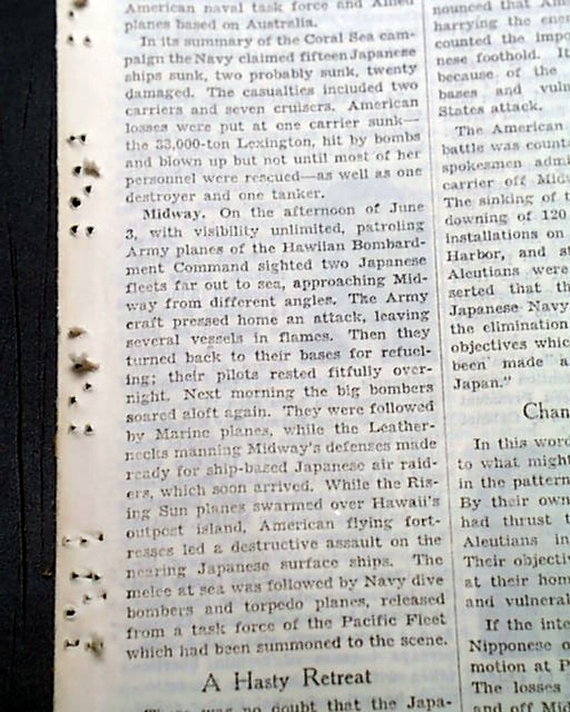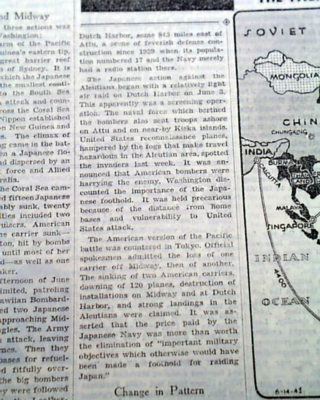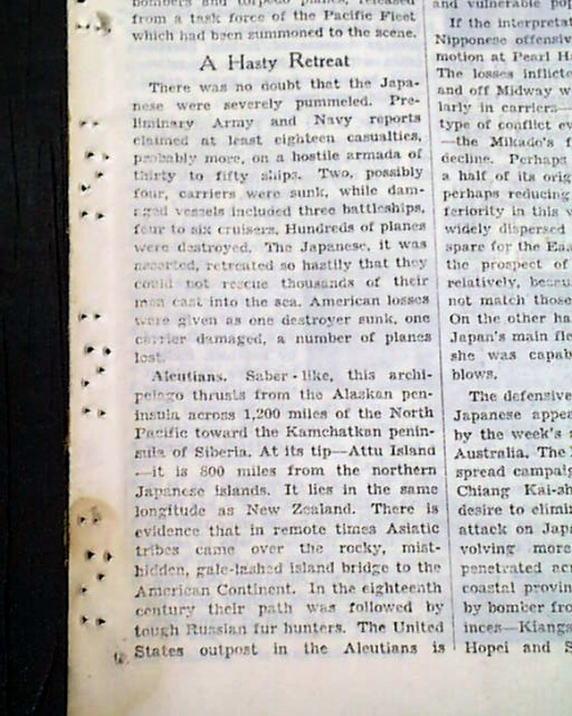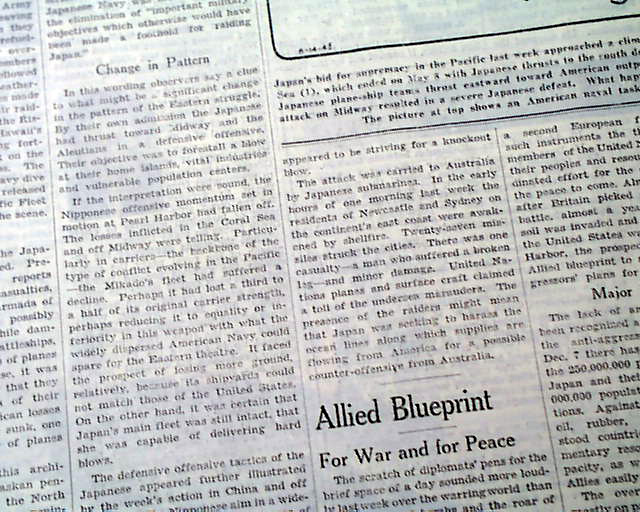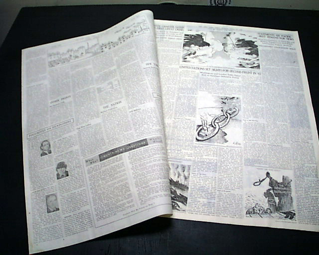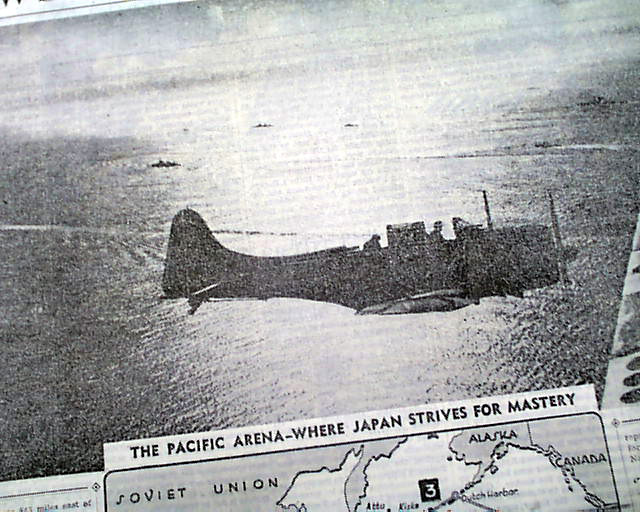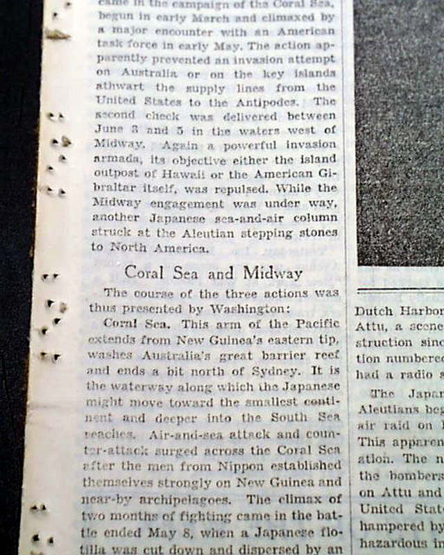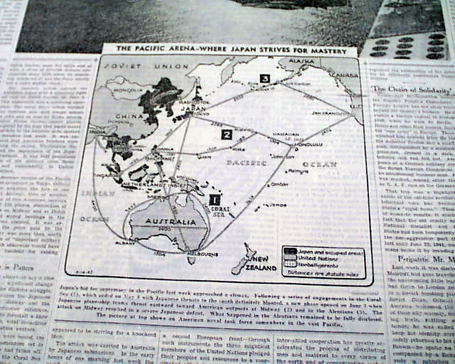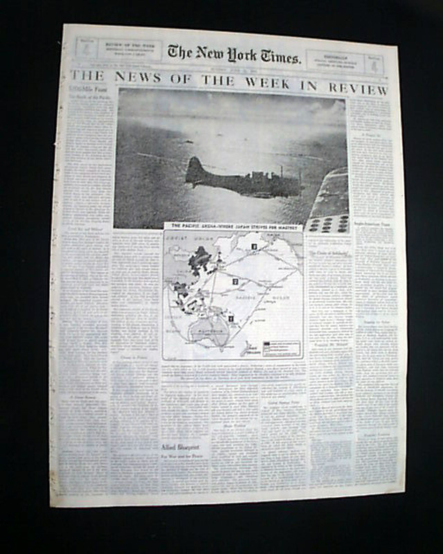Under the banner heading: "THE NEWS OF THE WEEK IN REVIEW" are one column headings: "5,000-Mile Front" "The Battle of the Pacific" with even smaller subheads, related photo and map. (see images)