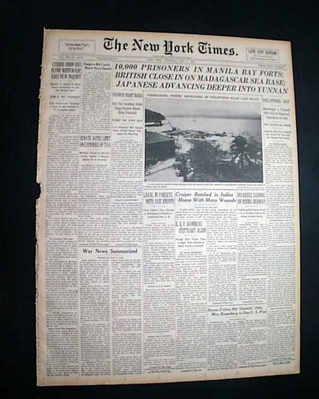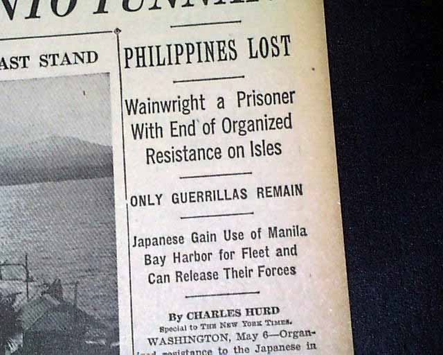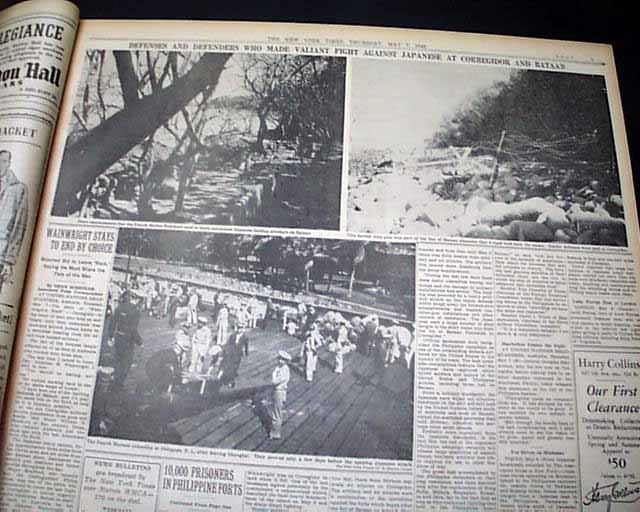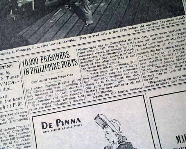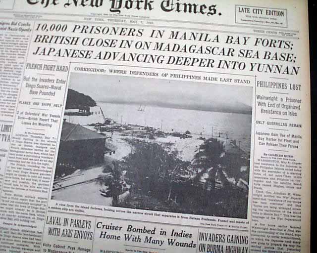 The front page has a six column headline: "10,000 PRISONERS IN MANILA BAY FORTS" with subheads and related photo. More inside. (see images) Always nice to have notable events in history reported in this World famous publication.