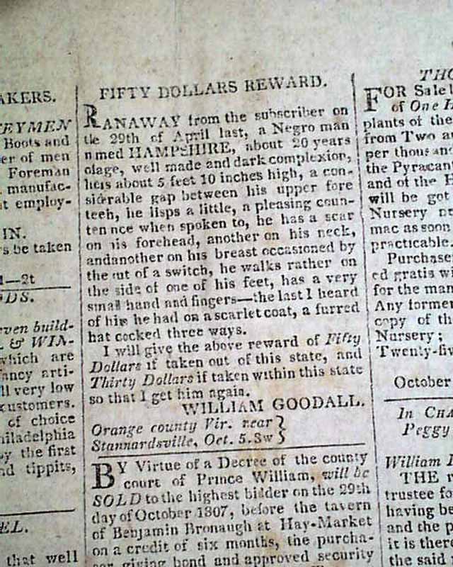 Several reward ads for runaway slaves. Four pages, nice condition.